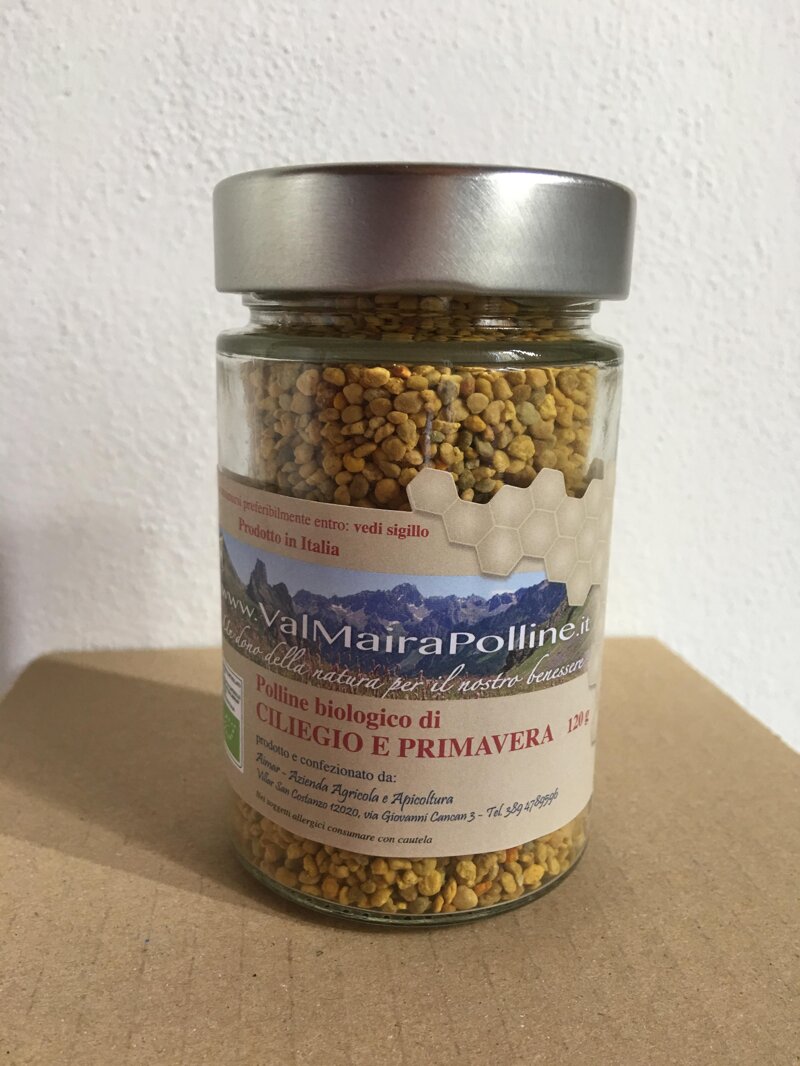 n° 1 vasetto di polline biologico di ciliegio e fiori primaverili